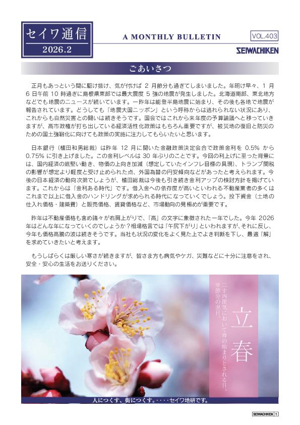 セイワ通信2月号を更新しました。